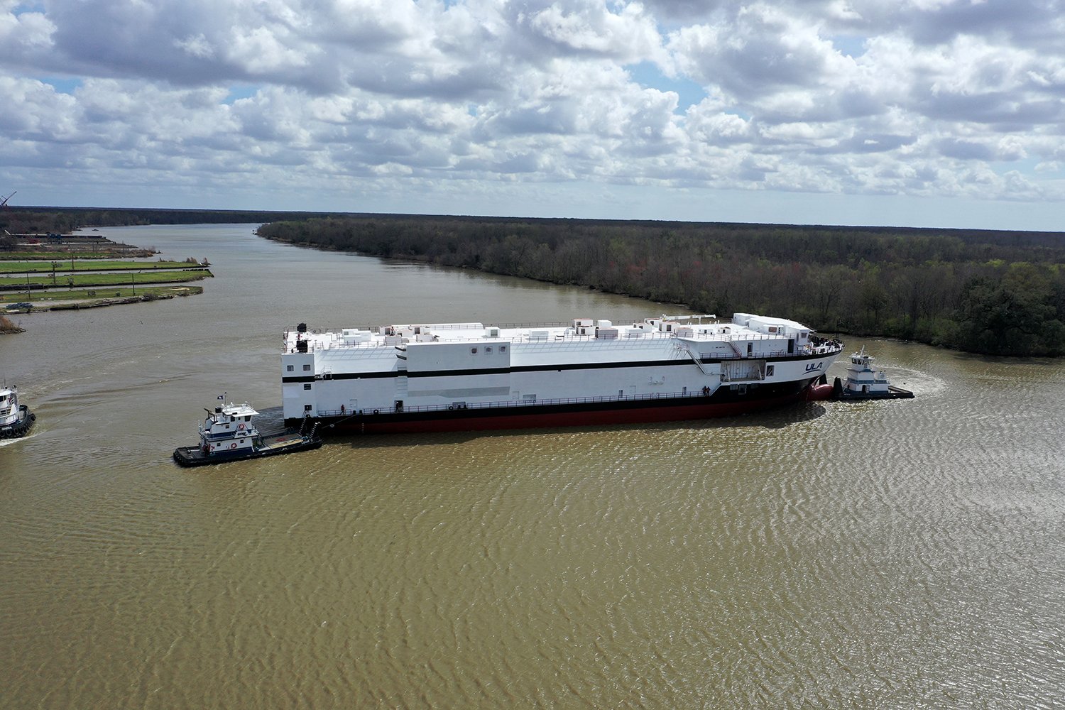 Both the SpaceShip and RocketShip are highly maneuverable, unique custom-built rocket transport ships and the only U.S. flagged ships with the versatility to navigate both rivers and open ocean. They feature living quarters and dining areas for the crews, a heli-pad on the top deck, a below-deck machine shop and sophisticated computers and navigational aids on the bridges.